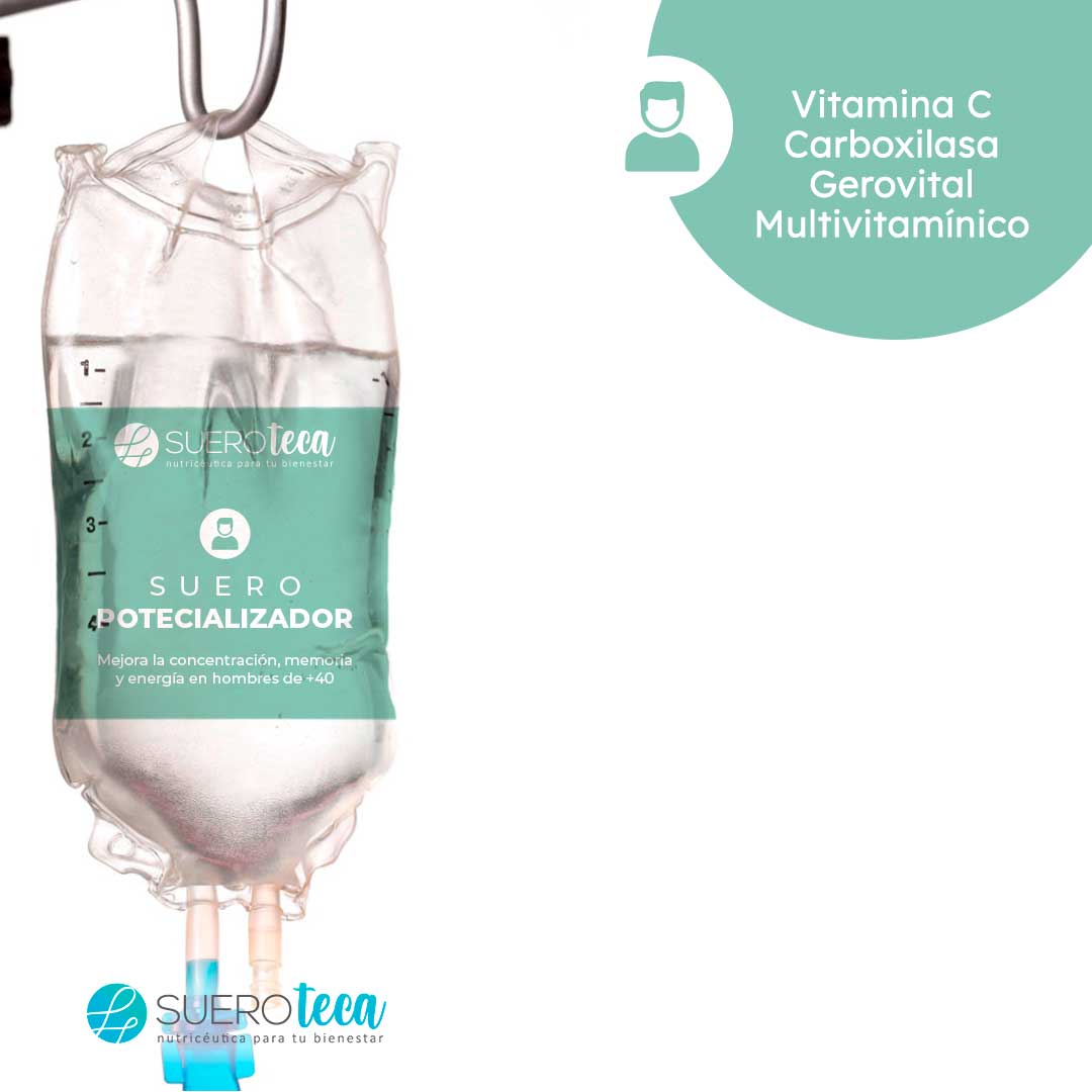 La combinación de elementos hace que este suero mejore la concentración, memoria y energía, fortalece el sistema inmune y es antienvejecimiento, la Vitamina C  y el Gerovital ayudan a modular la reacción al estrés.